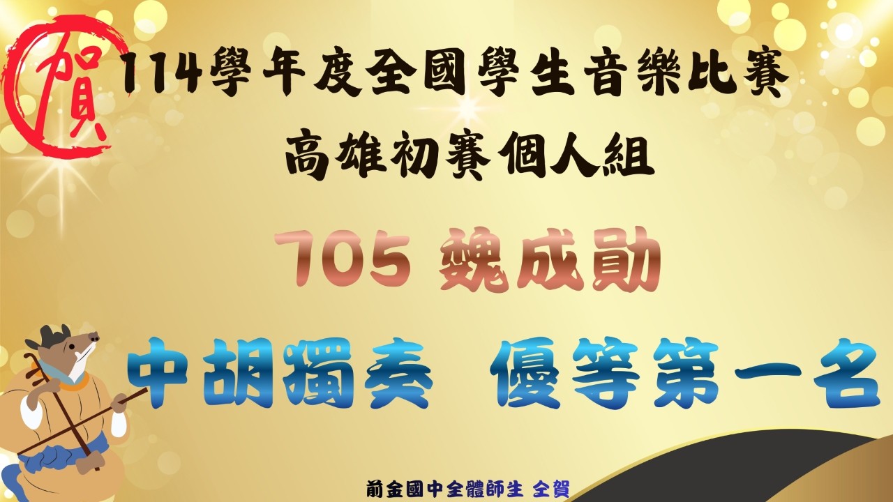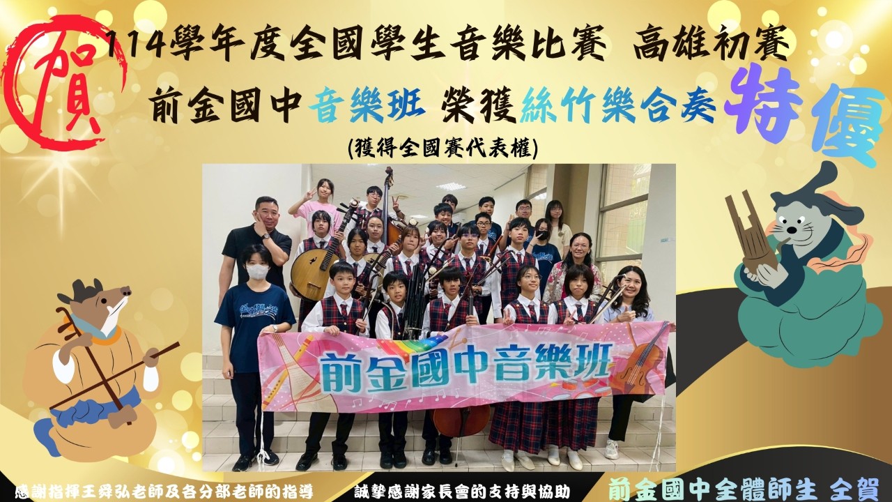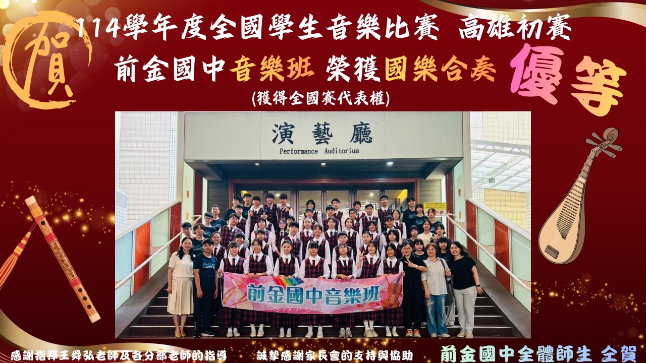 賀本校音樂班參加113學年度全國學生音樂比賽_南區決賽- 獲國樂合奏_優等!