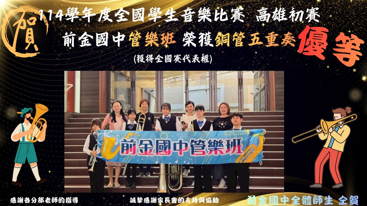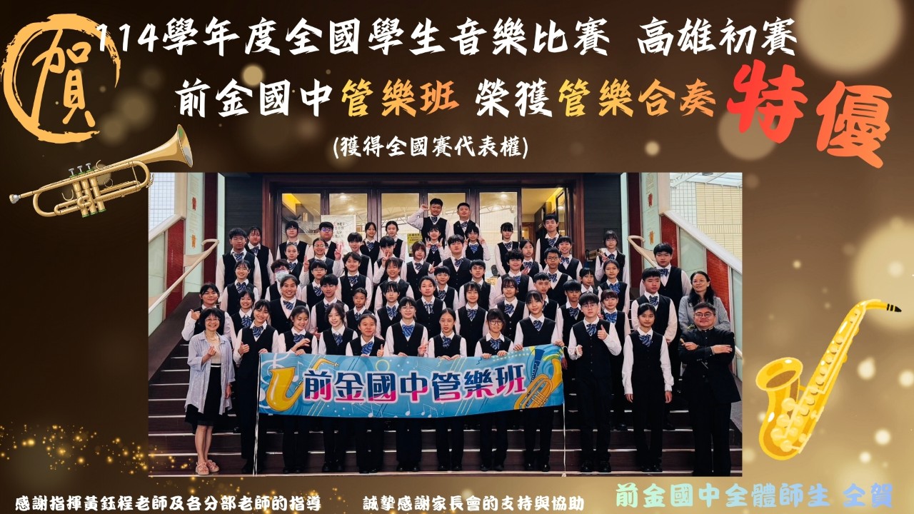 賀本校音樂班參加113學年度全國學生音樂比賽_南區決賽- 獲管樂合奏_優等!
