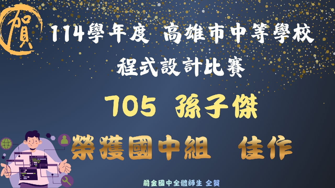 賀本校705班孫子傑參加114年中等學校程式設 ...