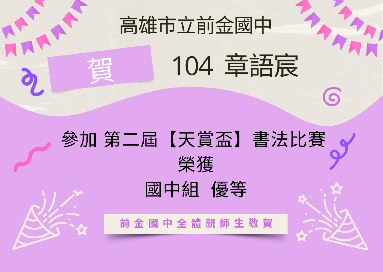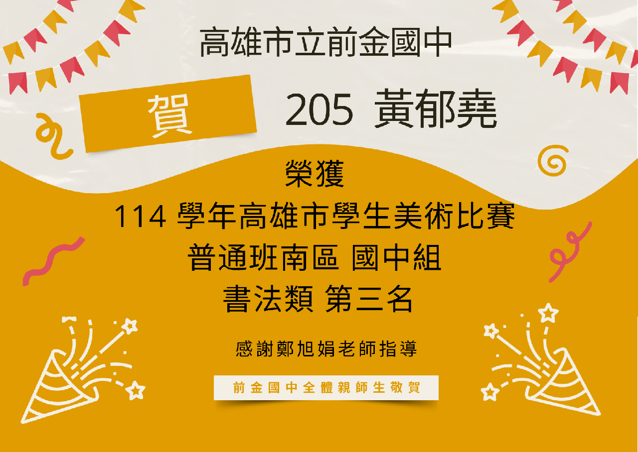 賀本校901林彥廷參加高雄市113學年度數學競賽獲個人獎佳作